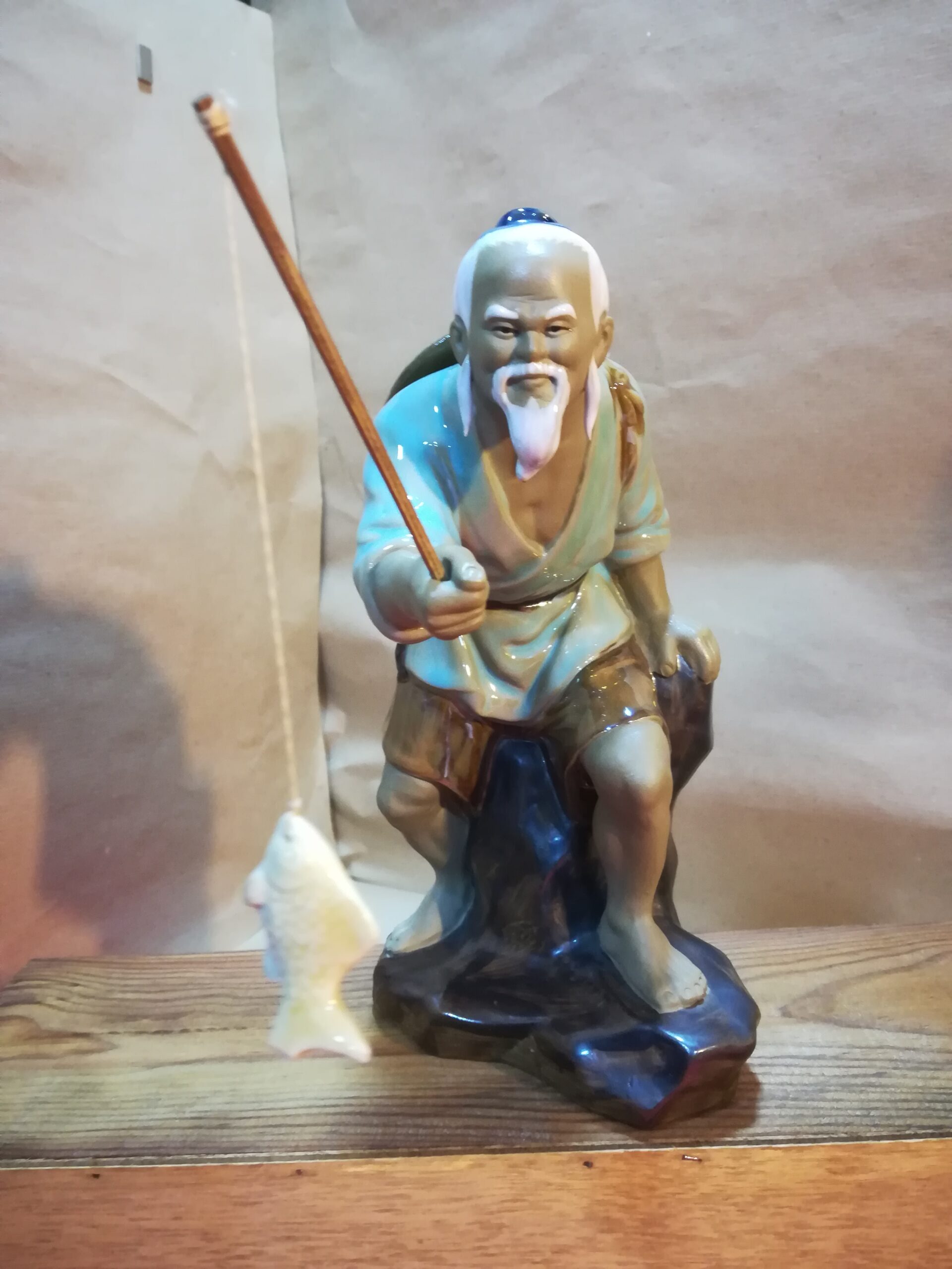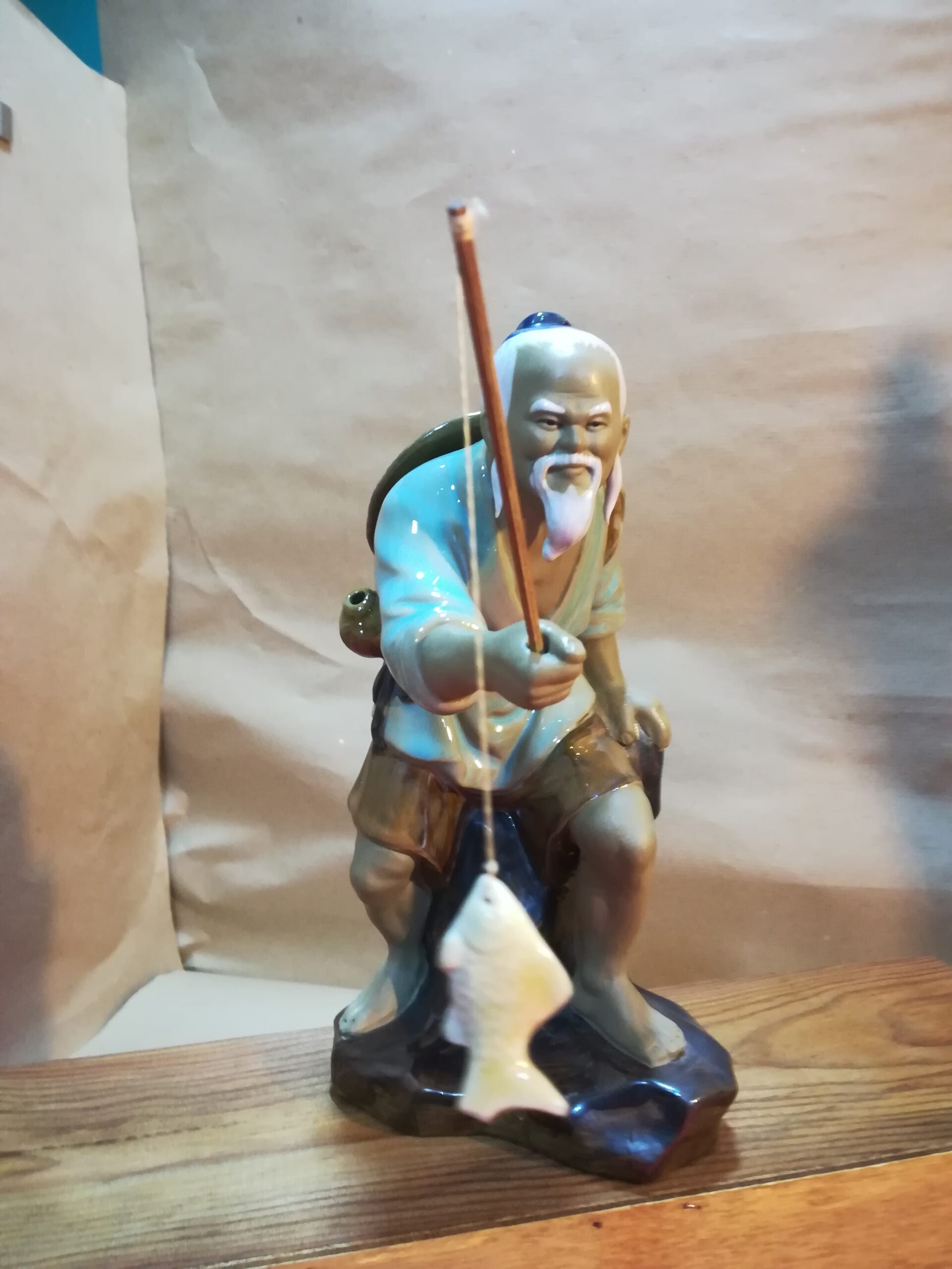 Pescador em porcelana oriental, bom estado de conservação . Altura 21 cm .